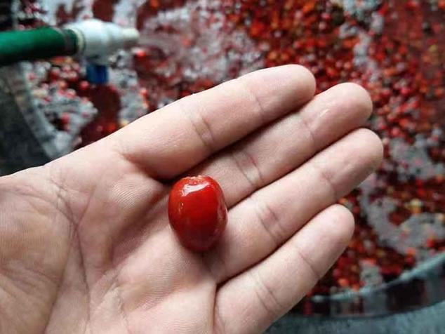 3. 選定好的咖啡櫻桃放入盛有水的水箱中,密度較小的咖啡櫻桃(未成熟或是有瑕疵的)在其中會(huì)漂浮起來,將其取出并丟棄。此過程還有助于去除有機(jī)物細(xì)菌,并使所有咖啡櫻桃在同一溫度下開始發(fā)酵過程。